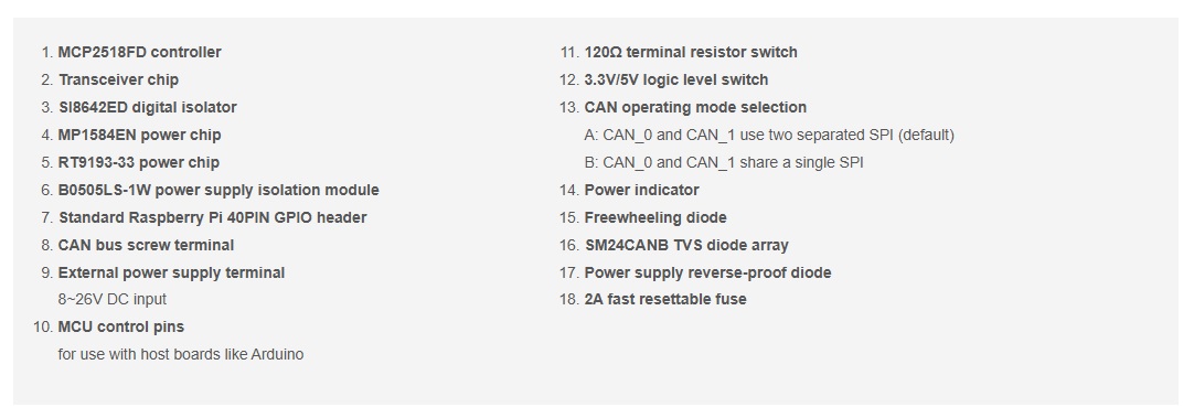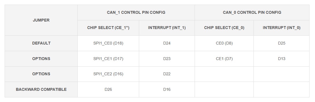 Onboard SPI0 / SPI1 chip select and interrupt pin configuration, avoid conflicting with other SPI slave devices, also used for cascading to support 4-ch CAN communication