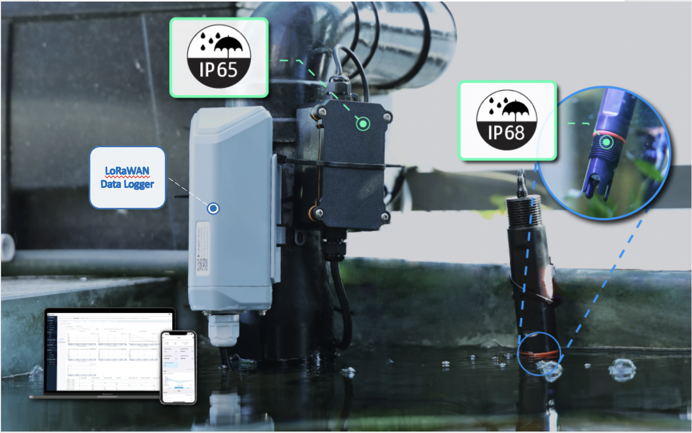 Đầu đo cảm biến với chuẩn IP68, mạch đo với chuẩn IP65 đảm bảo dùng trong môi trường bụi và nước, cho các ứng dụng đo trong vườn, đồng ruộng, nhà kính, bể bơi, ao hồ.