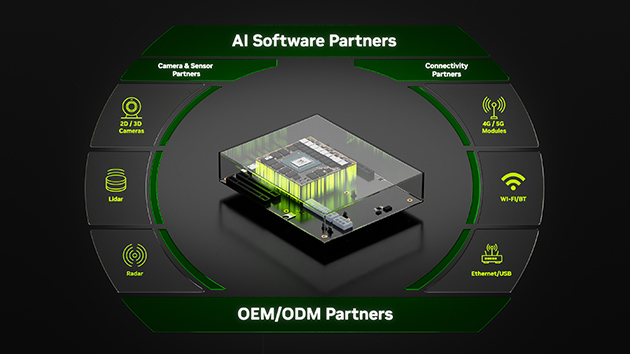 | Tìm hiểu các sản phẩm và dịch vụ mới nhất được cung cấp bởi nền tảng Jetson. Hệ sinh thái đối tác Jetson cung cấp nhiều loại AI và phần mềm hệ thống, công cụ dành cho nhà phát triển và phát triển phần mềm tùy chỉnh. Có sẵn nhiều loại hệ thống Jetson Orin và bo mạch vận chuyển, cũng như các thiết bị ngoại vi như cảm biến, máy ảnh, mô-đun kết nối (5G, 4G, Wi-Fi), v.v. | ![]() |