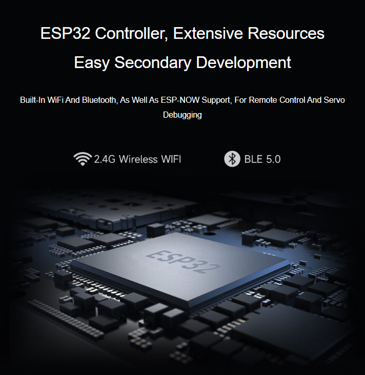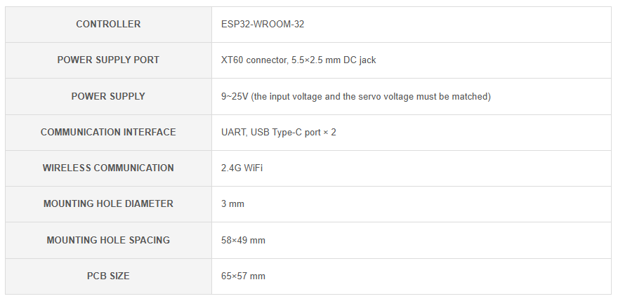 Allows controlling up to 253 serial bus servos at the same time via ESP32 UART or USB port,