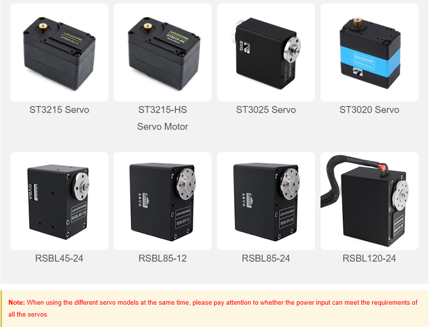 Supports ST / RSBL series bus servos and selecting power supply input according to the servo used