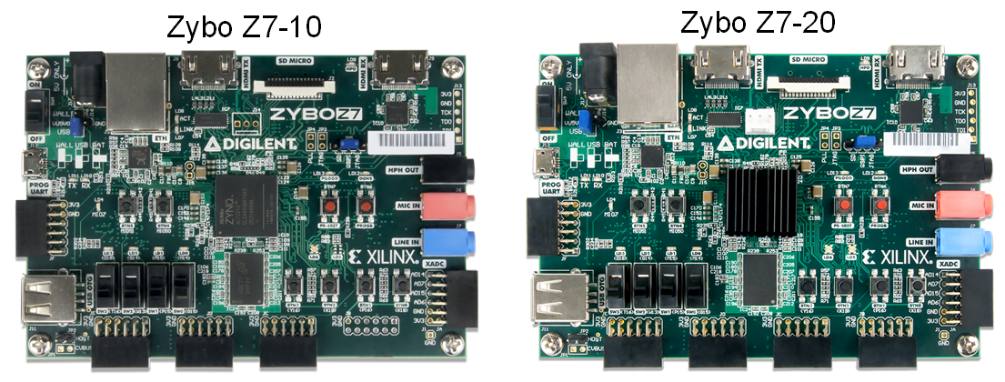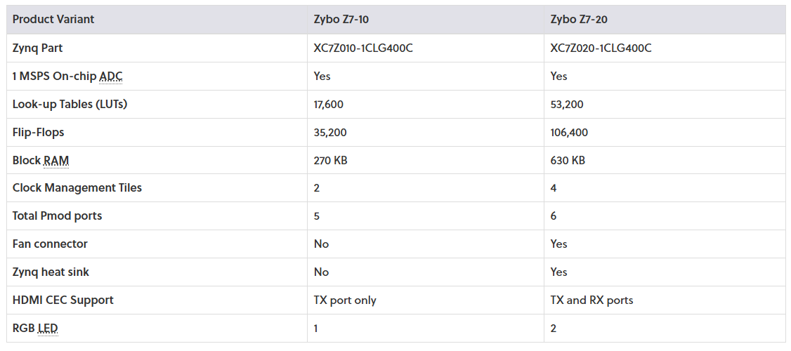 - HDMI sink port (input) with CEC (Zybo Z7-20) and without CEC (Zybo Z7-10)