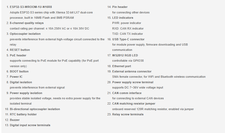 | Version | ESP32-S3-POE-ETH-8DI-8RO | ESP32-S3-POE-ETH-8DI-8RO-C | |