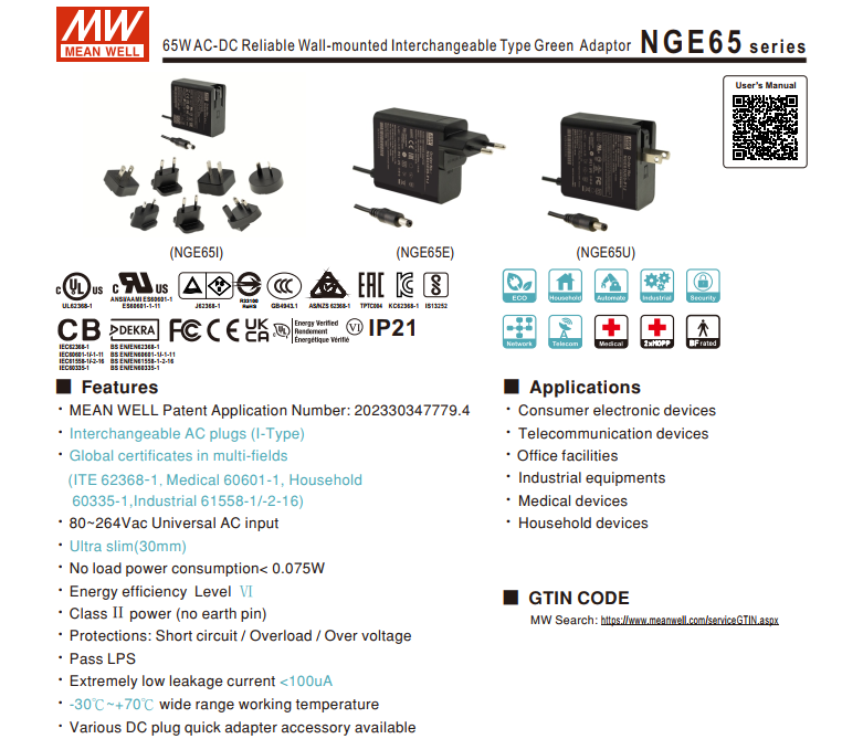 + Voltage Range Input : 100~240 VAC , 50/60Hz , 1.5-0.8A (1.5A/ 115 VAC, 0.8A/ 230 VAC)