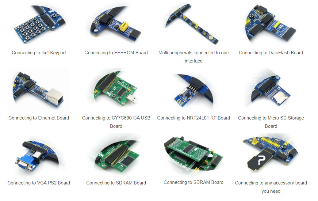 OpenEP4CE6-C supports further expansion with various optional accessory boards for specific application. The modular and open design makes it the ideal for starting application development with ALTERA Cyclone IV series FPGA devices. OpenEP4CE6-C enables you to start your design with the Nios II processor easily and quickly.